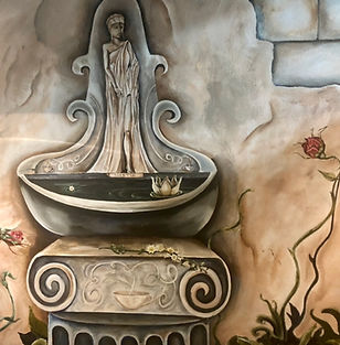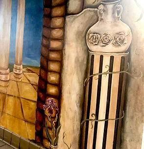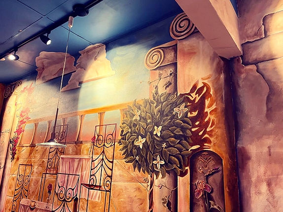 Welcome to The Campus CoffeeBean, where art meets caffeine! These vibrant murals, inspired by Greco-Roman themes, celebrate the beauty of culture and the joy of starting each day with a delightful cup of coffee. You'll find a stunning depiction of a woman dancing with her coffee cup, embodying the perfect blend of energy and elegance. These were such a joy to create and when anyone comes into the shop, when they walk down the hall and look up to their left, they'll see the little goldfish I added so that I would have company while I painted. :)